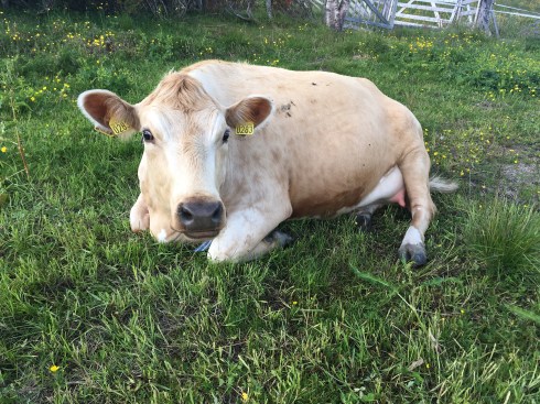 Vestlandsk fjordfe. Usedvanlig sedat. Sist inn til melking. Må lokkes og lirkes.