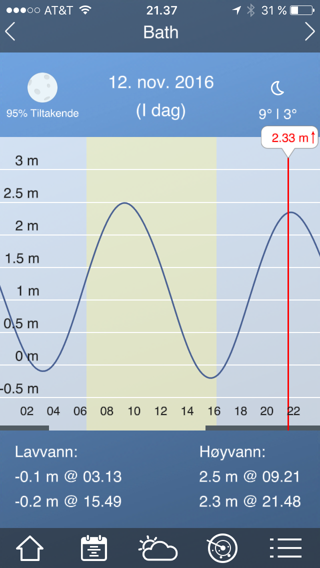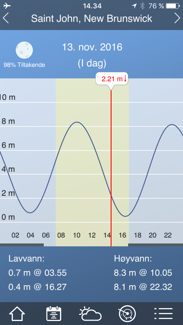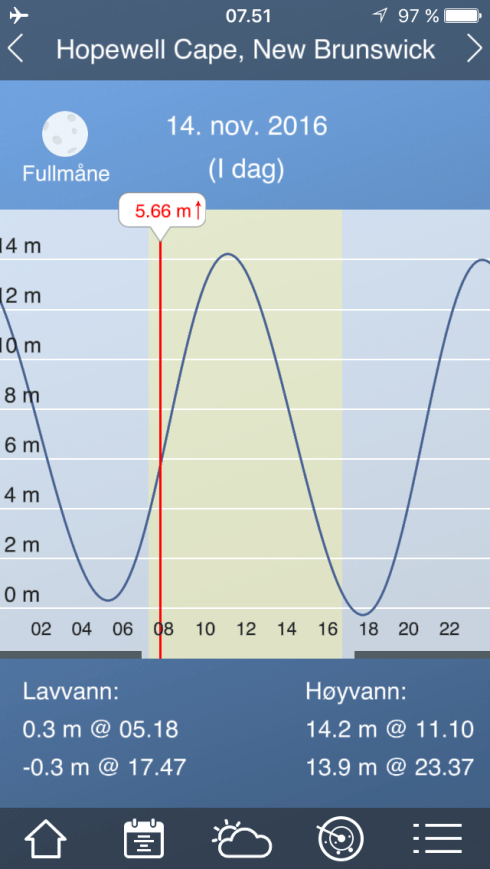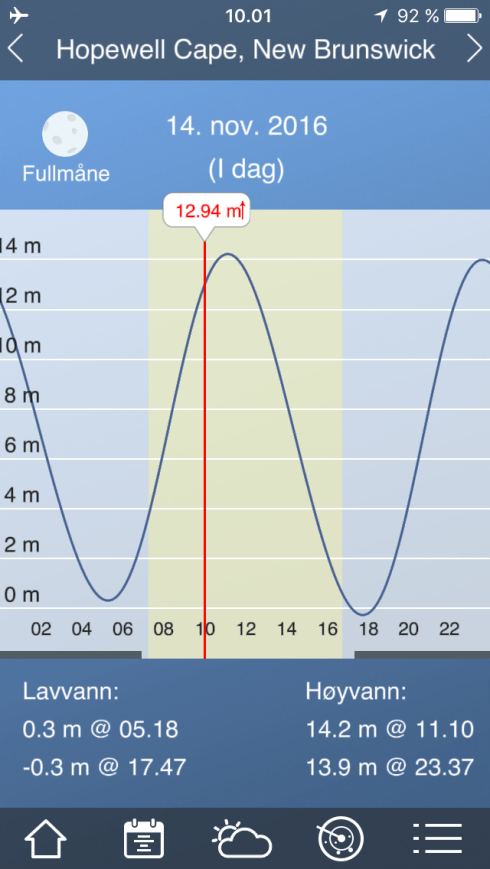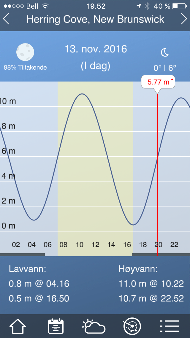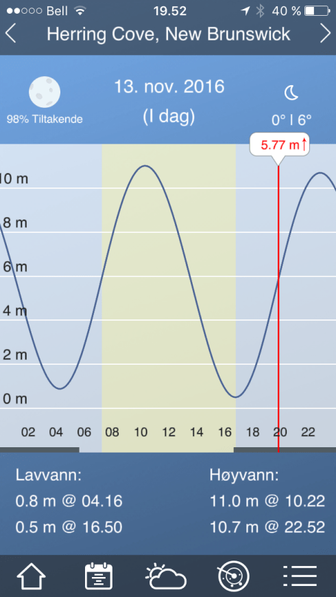 Veldig relevant app for denne turen.Ser ut til å fungere godt for Oslo, men usikker på hvordan den vil oppføre seg i Bay of Fundy. (Pål har sørget for tidevannstabeller på papir)