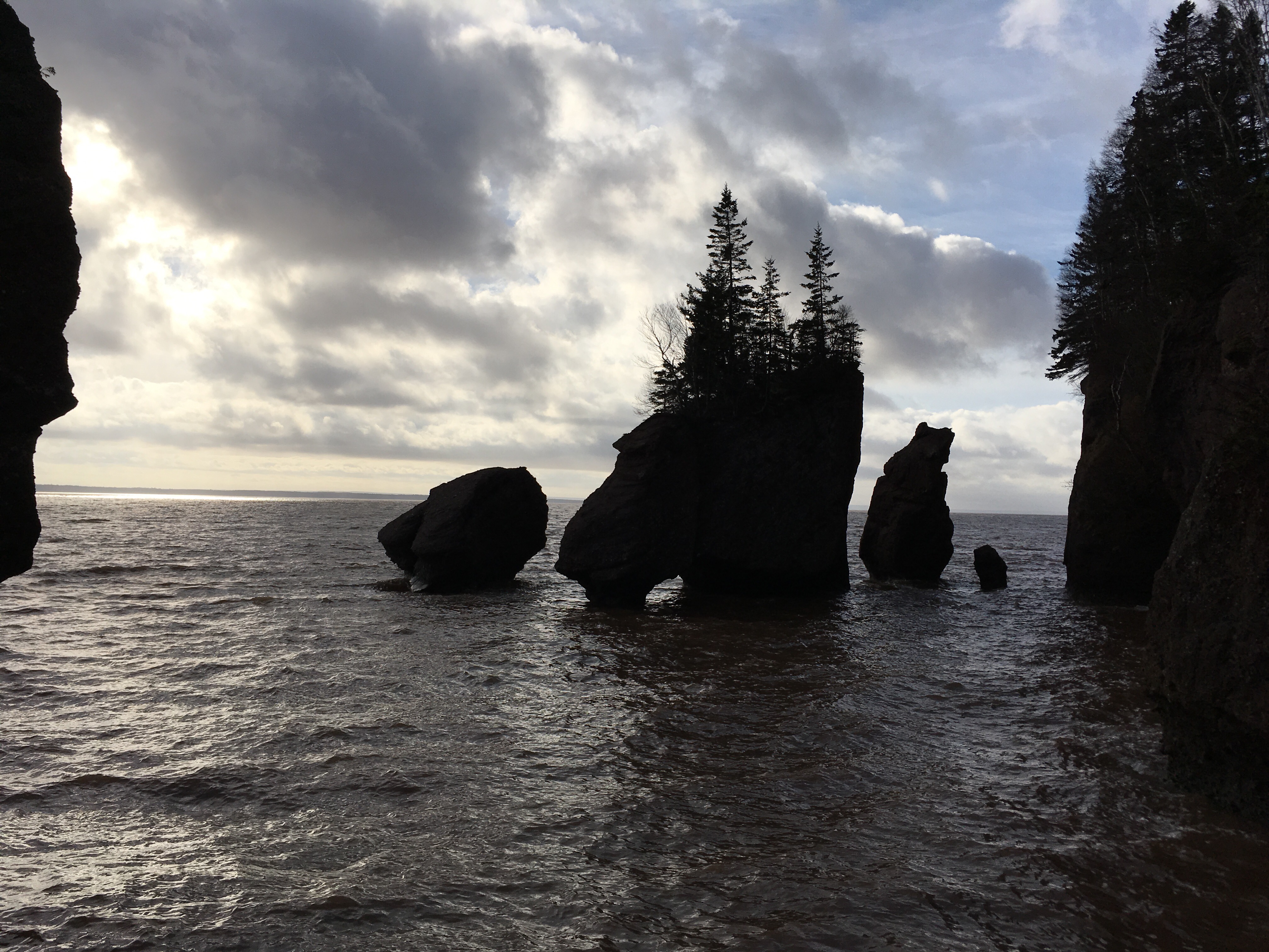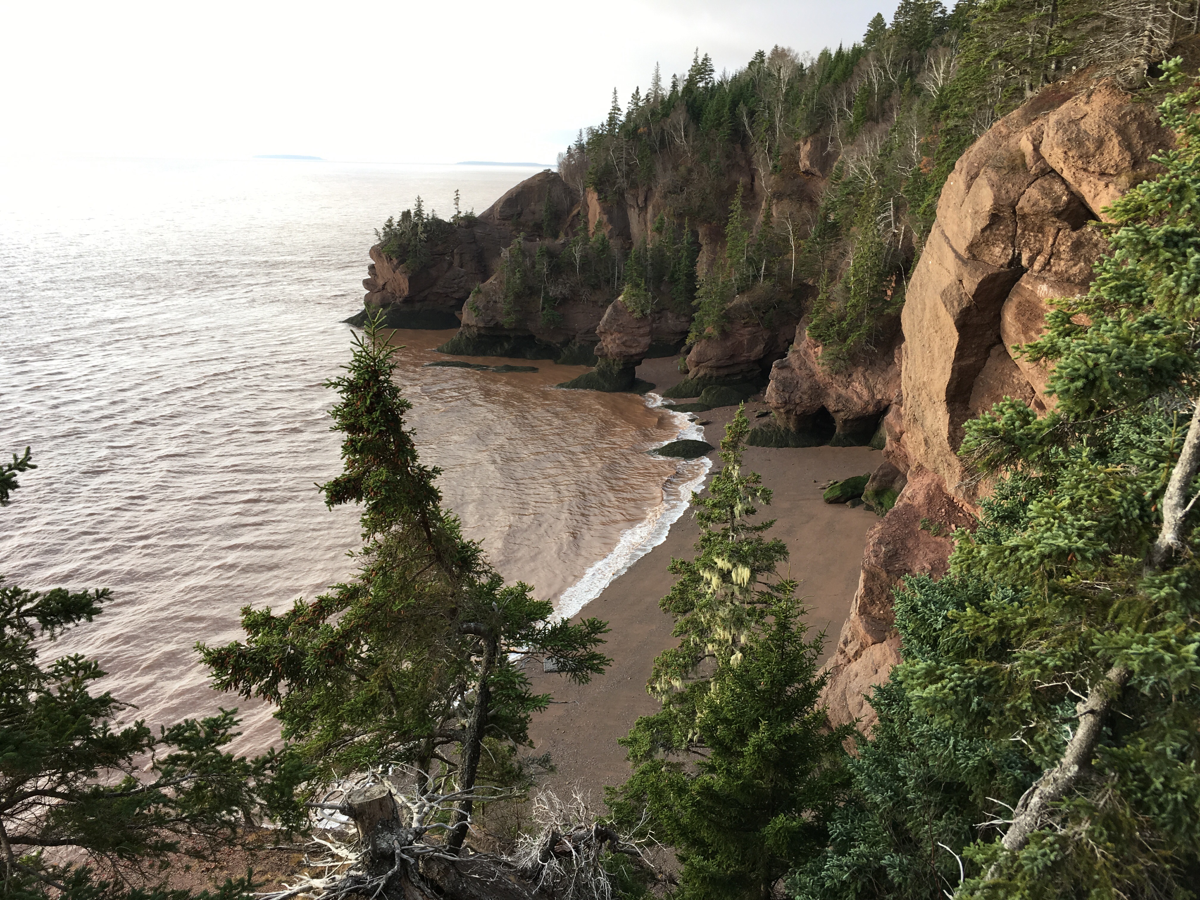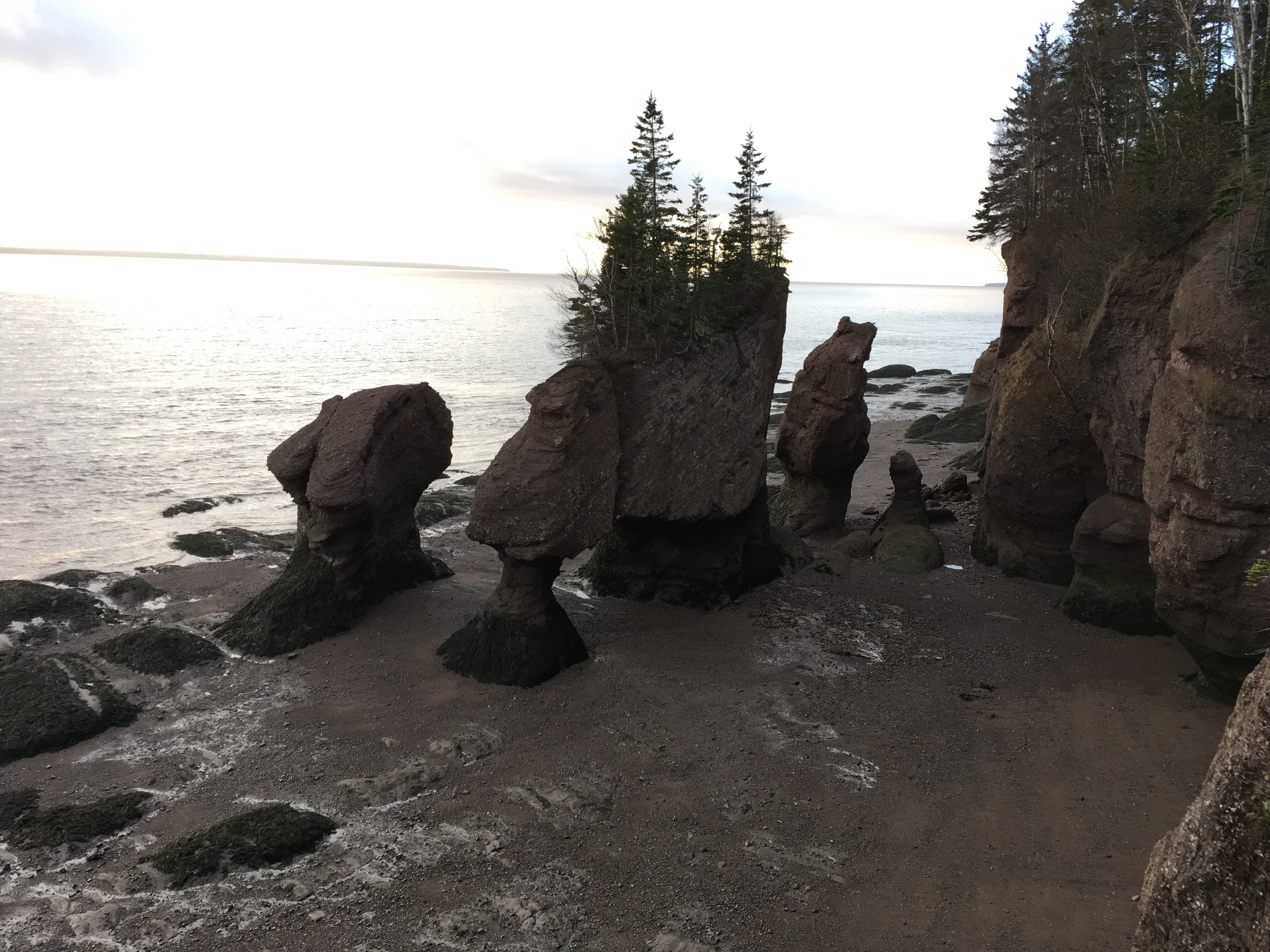 Dette har vært dagen for dypdykk i Bay of Fundys flo og fjære. Ideelle forhold.  Full flo ved lunchtid. Vi var oppe 0530 og på veien til Hopewell Rock i solrenningen en liten time senere.