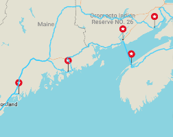 Seksti mil fra Bath opp til Alma i Canada. Transportetappe gjennom grisgrendte strøk. De få byene har en usedvanlig stor tetthet av kirkespir, ett for hvert av de ulike kirkesamfunnene som er representert. Til saken – og turens tema,